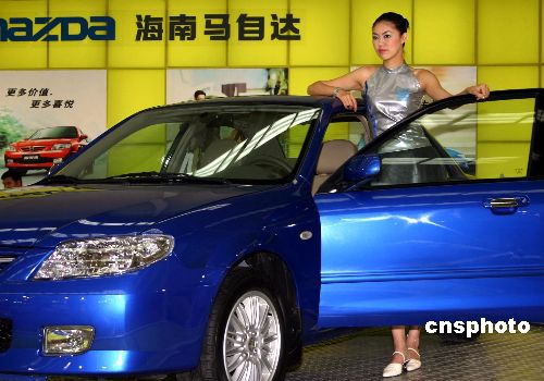 7月30日,2004中國沈陽國際汽車工業展覽會在沈陽國際會展中心開幕,參展商組織模特促銷,展覽大廳里香車美女如云,光彩照人。作者:曹精義