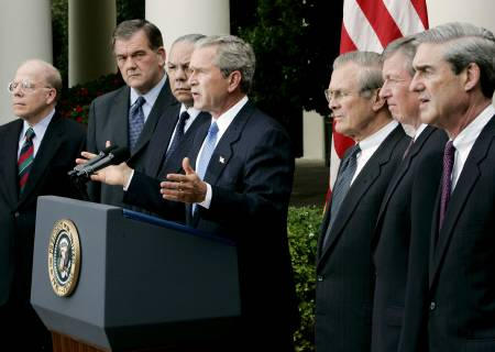 在美國多位安全部門高官的陪同下,布什當天在白宮的新聞發布會上稱:“我們國家正面臨危險,我們正在盡一切可能對抗危險。”