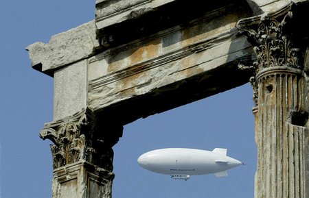 中新網(wǎng)8月3日電 據(jù)路透消息,7月24日,在雅典城上空的飛行測(cè)試中,一艘希臘飛艇正飛越著名的希臘古代建筑亞德里安拱門上空。今年8月13日至29日第28屆奧運(yùn)會(huì)舉辦期間,這艘飛艇將盤旋在雅典上空,負(fù)責(zé)將雅典各比賽場(chǎng)館的即時(shí)場(chǎng)景圖片發(fā)送到雅典奧運(yùn)會(huì)安全指控中心,以切實(shí)保障本屆奧運(yùn)會(huì)的各項(xiàng)安全。