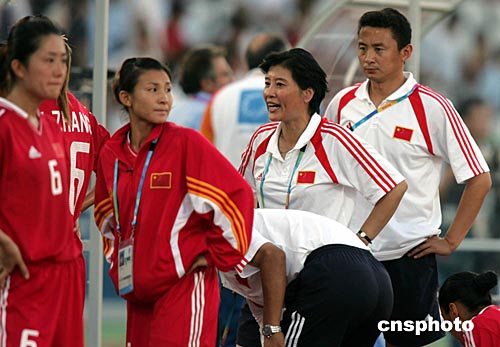 “比分擴大為二比0之后,我們才真正地意識到場上的中國女足存在著諸多非常嚴重的問題。”資源記者、主持人董路分析說,“首先是體能狀態極差,才二十幾分鐘許多球員就已經在氣喘吁吁了,顯然賽前訓練缺少必要的調整和恢復;其次前場球員發動進攻的時候,整個后衛線依然停留在本方禁區前沿,三條線之間的距離如同北京到雅典一樣遙遠;再有當對方進攻的時候,中國女足薄弱的中場抵擋不住,后衛一味退守而且幾乎沒有緊逼盯防,經常眼睜睜地看著德國姑娘或帶球疾進或自由穿插……”