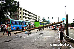 圖:南寧市遭暴風(fēng)雨襲擊大面積停電