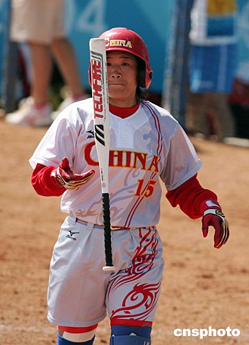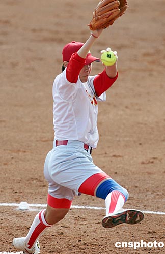 當地時間八月十六日,在雅典奧運女子壘球比賽中,中國隊四比二戰勝加拿大隊。中新社記者:毛建軍