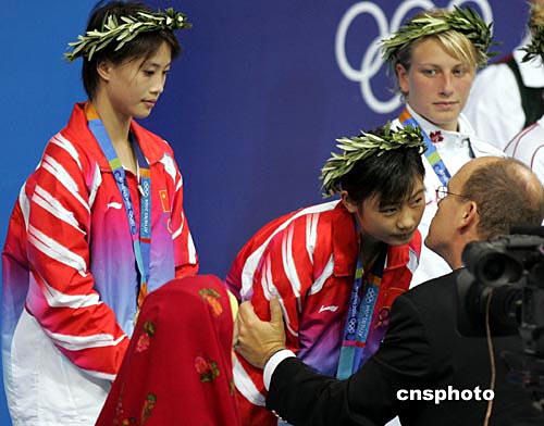 中新社雅典八月十六日電 在雅典當(dāng)?shù)貢r間十六日晚間進(jìn)行的奧運(yùn)會跳水女子雙人十米跳臺決賽中,中國選手勞麗詩/李婷最終以三百五十二點(diǎn)一四的總成績奪得冠軍,為中國跳水隊(duì)贏得本屆奧運(yùn)會的第三枚金牌。由此,中國奧運(yùn)軍團(tuán)所獲金牌數(shù)已達(dá)十枚。