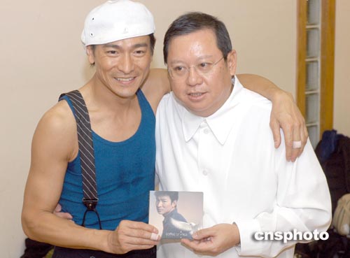 東亞娛樂老板林建岳到場為劉德華打氣并與眾舞蹈藝員合照。