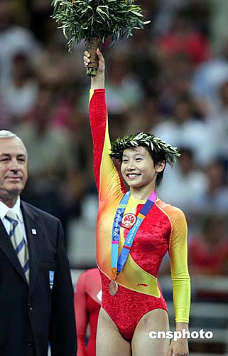 當(dāng)?shù)貢r(shí)間八月十九日晚,中國體操選手張楠獲得雅典奧運(yùn)女子體操全能銅牌。中新社記者:毛建軍