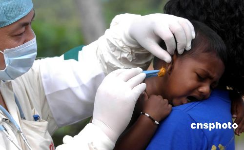 2004年12月26日的印度洋海嘯給斯里蘭卡、印度尼西亞等南亞、東南亞國(guó)家造成巨大的生命和財(cái)產(chǎn)損失。災(zāi)難過(guò)后,中國(guó)派出多只醫(yī)療隊(duì)火速趕往災(zāi)區(qū)積極參與救援,給當(dāng)?shù)厝嗣褚詿o(wú)私的援助。作者:Ic/cnsphoto