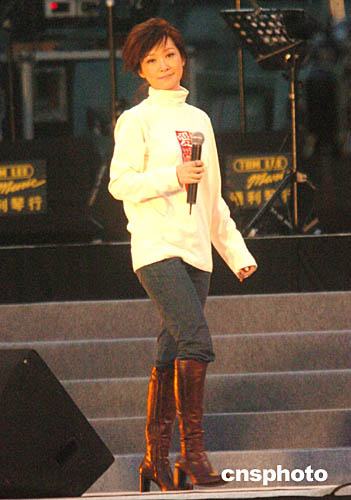 關(guān)心妍7日晚出席在香港大球場(chǎng)舉行的“愛心無國(guó)界” 兩岸三地新(加坡)馬(來西亞)演藝界大匯演﹐為南亞災(zāi)區(qū)籌款義演。中新社記者:趙振清