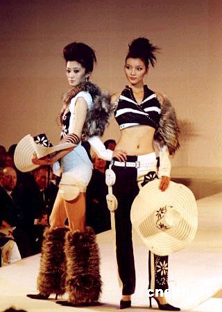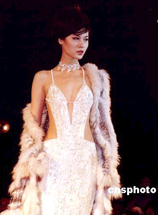 裘皮革皮制品交易會上模特展示裘皮晚裝