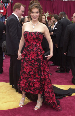 身著阿瑪尼時(shí)裝的勞拉·哈林(Laura Harring)出席在第74屆奧斯卡頒獎(jiǎng)禮上。當(dāng)時(shí)她展示一對(duì)價(jià)值上百萬(wàn)美元的白金鉆石孔錐形高跟鞋。這雙鞋子由設(shè)計(jì)師斯圖亞特·威特門和白金協(xié)會(huì)共同完成。哈林還戴了一條價(jià)值兩千七百萬(wàn)元的項(xiàng)鏈。