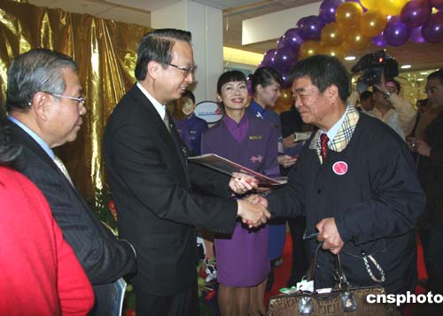 惠州市臺商投資企業協會會長楊平和第一個辦理登記牌的旅客。作者:陳文