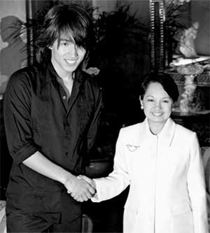 菲律賓媒體當(dāng)時(shí)報(bào)道稱,言承旭旋風(fēng)是在菲律賓進(jìn)行兩天一夜的宣傳行程中刮起的,拜《流星花園》所賜,他在當(dāng)?shù)氐闹群芨撸B總統(tǒng)阿羅約也邀約與他會(huì)面。阿羅約坦言,她看過(guò)《流星花園》,對(duì)言承旭能來(lái)菲律賓感到十分開(kāi)心與歡迎,并稱贊他長(zhǎng)得很英俊,比電視里還好看。言承旭有些不好意思,以流利的英文感謝總統(tǒng)的支持,也表達(dá)了對(duì)她的敬佩。