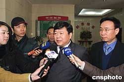 赴臺吊唁辜振甫的海協會會長汪道涵個人代表孫亞夫、李亞飛,二月三日在上海專程向汪道涵作“臺灣之行”的回顧和介紹,汪道涵對辜振甫家屬熱情接待他的個人代表表示感謝。圖為孫亞夫(中)、李亞飛(右)接受媒體采訪。作者:潘索菲