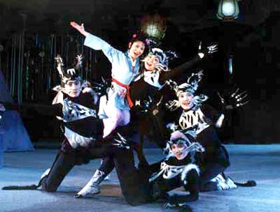 除了動(dòng)物,劇中的人物也在發(fā)生著變化。重排前大蘭是一個(gè)極壞、無藥可救的人物形象,最后以死結(jié)束;創(chuàng)作人員在進(jìn)行重排時(shí)做了改動(dòng)——大蘭通過教育,變成了一個(gè)好人。
