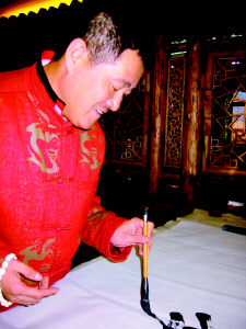 本山的辦公室非常寬敞,裝修風格都是本山自己選的,古香古色。本山指著自己辦公桌后面的墻畫說:“這是我開原老家的原景,美吧!我是按照自己的記憶畫的,我也是因為不能忘記自己的出身,才用這幅畫,這也是我一直以來的創作源泉。”看來,本山立志不會忘本。(記者 寧玲)