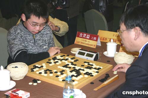 今天上午,在簡短的開幕式后,比賽正式拉開帷幕。結果,聶衛平最小的徒弟“小胖”古靈益執黑在與師傅的對決中最先告捷,由于盤面不足,聶衛平以超時告負,再次印證了古靈益作為“九段高手克星”的名號。朱元豪二段爆冷將邵偉剛九段挑下馬,首屆“西南王”楊一五段以一又四分之一子戰勝第二屆“西南王”古力七段,俞斌、王磊、王堯、周鶴洋、王煜輝分別戰勝對手晉級八強。