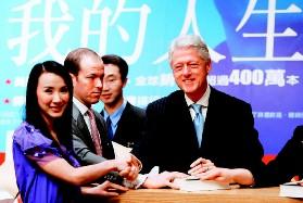 在排隊簽名的人龍中,有一名穿著紫色雪舫衫,黑色花裙亮眼的美女書迷,認(rèn)出來了嗎?她就是美女蕭薔,平常都是被粉絲包圍的蕭薔,今天成了美國前總統(tǒng)克林頓的超級粉絲。蕭薔說:“恭喜出書。”前美國總統(tǒng)克林頓則回答:“謝謝。”