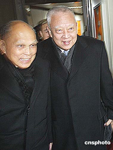三月二日,香港特區的全國人大代表和政協委員乘機抵達北京首都機場,香港特首董建華、全國政協副主席霍英東一起走出飛機連廊。作者:廖文靜