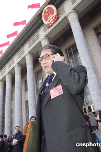 各路媒體今天下午派遣精兵強將,采訪全國政協十屆三次會議開幕式,在人民大會堂前圍追堵截各自關注的委員。