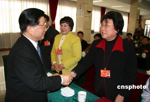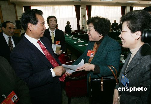 中新社北京三月四日電 中共中央政治局常委吳邦國、溫家寶、曾慶紅、黃菊、吳官正、李長春、羅干四日下午分別看望出席全國政協十屆三次會議的委員,并參加了分組討論,與政協委員共商國是。