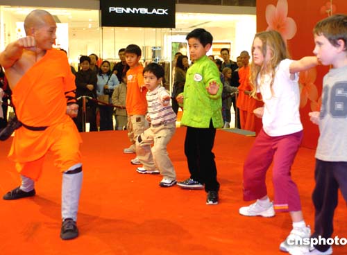 少林武術團日前來香港表演時,武教頭現場教練香港小朋友武功,以廣大中國傳統武術,增進兩地友情。作者:宋吉河