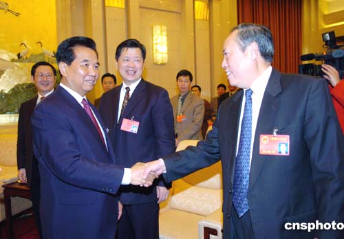 ·圖:吳官正與山東代表一起審議政府工作報告 (2005-03-06)