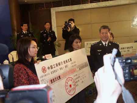 中新網3月10日電 據公安部網站消息,今天上午,公安部舉行公開懸賞通緝抓獲大毒販劉招華獎金兌現儀式,向廣西壯族自治區2名提供劉招華線索的群眾兌現獎金各10萬元,并同時頒發抓獲另一公開懸賞通緝的毒販馬順蘇的獎金5萬元。考慮到舉報群眾的安全,獎金分別由廣西、云南公安機關有關同志在兌現儀式中代領。