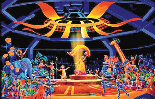 旅客亦可坐在一個容納二千二百人,以及有三百六十度觀景的劇院內欣賞另一出歌舞劇“獅子王慶典”,八十五名演藝人員會在每天八次,每次三十分鐘的演出中,將《獅子王》的故事表演發揮得淋漓盡致。在歌舞劇中,旅客可聽到由Elton John演唱的“Can You Feel The Love Tonight?”,以及其它《獅子王》的經典金曲。