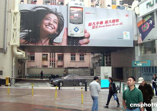 香港街頭廣告種類繁多,在銅鑼灣鬧市區所展現的巨型立體手機廣告更令人奪目。作者:譚達明