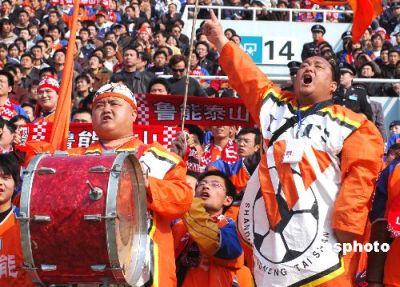 組圖:中超聯(lián)賽魯能隊(duì)與國際隊(duì)比賽中雙方的球迷