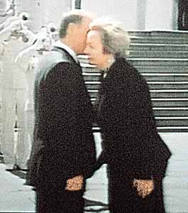 鏡頭三:這是普京夫婦,在盡量小聲地竊竊私語。他們什么話都沒說,但兩人的姿勢比任何話語都美觀,從這個創紀錄的鏡頭上可以清楚地看到這一點。