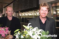 四月六日,前世界排名第一的網壇大腕考瑞爾(右)飛抵北京,將出席八日舉行的中國網球風云榜頒獎典禮。考瑞爾是上個世紀九十年代叱咤網壇的風云人物之一,與桑普拉斯、阿加西、張德培一起并稱美國“四大天王”。作者:武仲林