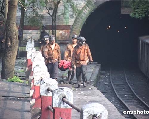 四月五日下午二時十五分,位于重慶市合川境內的天府礦業公司三匯一礦發生煤與瓦斯突出特大事故。圖為遇難礦工尸體被抬出井口。作者:郭晉嘉