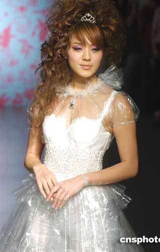 歌星官恩娜4月16日在香港為著名時裝設計師尹泰尉時裝演譯作品。作者:鄧慶樂