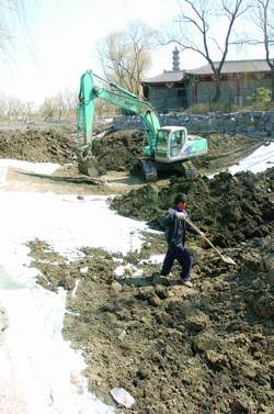 圓明園鋪設防滲膜,從生態學角度講,是把活水變成了死水。塑料膜隔斷了圓明園的水生物生態和陸地生態的聯系,最直接的影響就是園內的樹木。