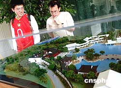 美國洛杉磯著名的杭廷頓博物院花園內正在興建一座中國蘇州園林,圖為游客欣賞其精致的模型。作者:賈國榮