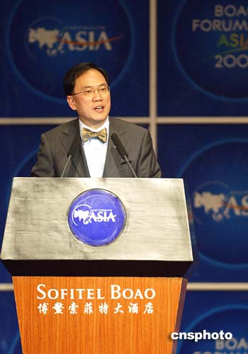 四月二十三日,博鰲亞洲論壇二○○五年年會在海南博鰲開幕,香港特別行政區署理行政長官曾蔭權發表主旨演講。作者:廖文靜