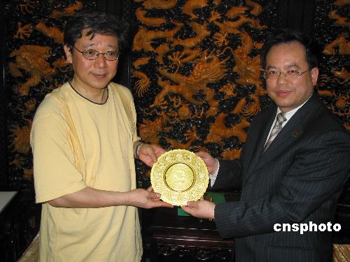 中新社東京五月一日電 今天中午十二點(diǎn)整,來自日本橫濱的公司職員近藤英男高興地從愛知世博會中國館館長孫鋼手里接過一面紀(jì)念金盤,他幸運(yùn)地成為中國館自三月二十五日開館以來接待的第一百萬位觀眾。