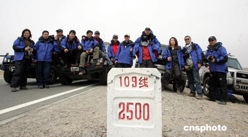 中新網5月3日電 二零零五年五月三日,穿越可可西里聯想鋒行探險隊車隊抵達北京——拉薩的109國道2500公里處。