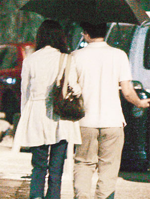 到了星期二(十日)下午六時,又見龐維仁駕車前往嘉欣渣甸山寓所,逗留約半小時后,他再駕車返中環的寫字樓,及至九時許,龐維仁載兩位男性友人再到嘉欣香閨,當時龐維仁駕車,嘉欣坐前座,兩位友人則坐后座,直駛深灣游艇會,泊好車后兩名友人識趣的走開讓二人獨處。由于當時下雨,龐維仁張開雨傘,嘉欣與他一同在雨中步進碼頭,喁喁細語相當浪漫。
