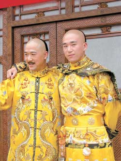 《飛龍倚天游》和《龍非龍鳳非鳳》兩部古裝戲昨天在橫店同時對媒體開放。雖然是兩個各自獨立的劇組,但兩部戲方方面面千絲萬縷的聯系起初仍搞得記者們一頭霧水。首先,兩部戲都是亦莊亦諧風格的情節劇,故事又都發生在清朝,而且除了張國立父子同上陣外,鄧婕還在《龍非龍鳳非鳳》中扮演慈禧并擔任總制片人。更復雜的是張國立及張默、王剛、臺灣演員鄭家榆等又在兩部戲中分別出演不同角色,搞得兩部戲之間的聯系更為復雜。