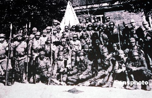 侵華日軍在七十三年前制造的遼寧撫順“平頂山慘案”,八百多間房屋被燒毀、三千多中國居民被日軍野蠻的屠殺。圖為參加平頂山大屠殺的日本撫順守備隊。作者:王麗南翻拍資料