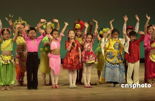 前來為正在此間舉行的愛知世博會(huì)中國(guó)館天津周助陣的中國(guó)天津華夏未來少兒藝術(shù)團(tuán),連日來以其精湛表演在參觀者中引起極大反響,世博會(huì)組委會(huì)為滿足觀眾要求,特地邀請(qǐng)?jiān)搱F(tuán)在世博會(huì)演出大廳進(jìn)行連續(xù)三場(chǎng)專場(chǎng)演出。圖為十四日下午的首場(chǎng)演出博得滿堂喝彩。作者:王健