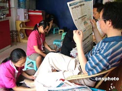 5月19日,重慶榮昌市民在某擦鞋連鎖店里接受擦鞋服務時閱讀報紙。據了解,該擦鞋連鎖店經營者不僅將“一元錢擦鞋”的小生意開成連鎖店,還在店內為顧客提供茶水、報刊閱覽等免費服務。增添文化內涵“連鎖擦鞋”受到市民的歡迎,每天顧客絡繹不絕。作者:朱蕓鋒