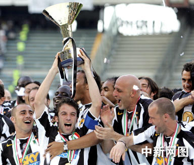 5月29日,尤文圖斯隊員為收獲第28個意甲聯賽冠軍歡呼。