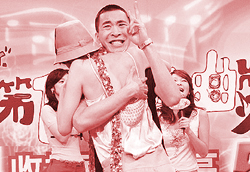 黃立行極力爭取林志玲的擁抱,“金曲獎那天我看到王力宏抱她,差點想K他。”林志玲不疑有他,張開雙臂擁抱,黃立行雙手摟住她的腰和背部,不但用力,還露很‘爽’的表情,“我現(xiàn)在沒有女友,有也變沒有了。”最后深情地說:“我是全世界最幸運的男人。”全場人笑壞了,林志玲尷尬地羞紅臉說:“我覺得害羞傻眼。”