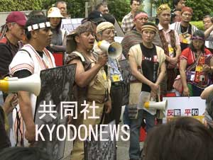 因日本右翼提前占據靖國神社周圍而放棄進入靖國神社的臺灣原住民舉行抗議集會。