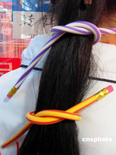 6月19日,在南京一家時尚用品商店里,一款名為“百變不斷”的新型鉛筆十分引人注目。據介紹,這種新型鉛筆采用國外最新工藝制作,筆長約40厘米,筆芯使用效果相當于2B的普通鉛筆。該鉛筆即可實用,也可作為裝飾,柔度很高,可以隨意彎曲打結,還可扎在女孩的辮子上。作者:孫忠南