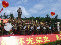 中新社長沙六月二十五日電(鄧霞周海清)為紀念毛澤東親手創建中共韶山特別支部八十周年,大型音樂舞蹈史詩《東方紅》交響合唱音樂會,今日在毛澤東的家鄉湖南韶山進行首次實景演出。四千余人在毛澤東銅像下聆聽那些傳唱了半個世紀的熟悉的經典旋律。