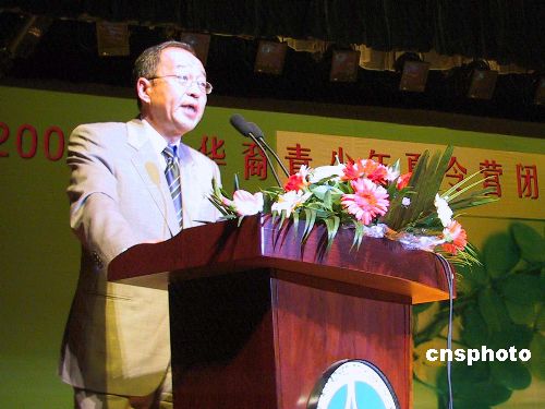 二00五印尼華裔青少年夏令營(yíng)6月28日下午在湖南長(zhǎng)沙閉營(yíng)。國(guó)務(wù)院僑務(wù)辦公室副主任、中國(guó)新聞社社長(zhǎng)劉澤彭、湖南省副省長(zhǎng)賀同新及國(guó)僑辦相關(guān)部門(mén)負(fù)責(zé)人參加閉營(yíng)式。圖為劉澤彭寄語(yǔ)印尼華裔青少年,希望他們將看到和學(xué)到的博大精深的中華文化帶回印尼。作者:劉雙雙