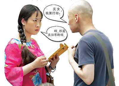 該片包括三個小故事。首先拍攝的是故事《打劫》。導(dǎo)演劉浩說,劇本是依照著芙蓉姐姐本身的性格編寫的。《打劫》表現(xiàn)了一名被打劫的女子,和劫匪進(jìn)行智斗的故事。現(xiàn)場,芙蓉姐姐的衣著依然走夸張性感路線,身穿一件半透明的薄紗上衣,腿上套著一條緊繃繃的繡著花紋的白褲子。但她面對鏡頭時比較自然,表演也算自如,導(dǎo)演對她一直以“美女”相稱,芙蓉姐姐滿口答應(yīng)。